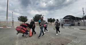شبكة الخامسة للأنباء _غزة حملة جوازات أجنبية يغادرون قطاع غزة عبر معبر رفح البري. تصوير فراس الشاعر