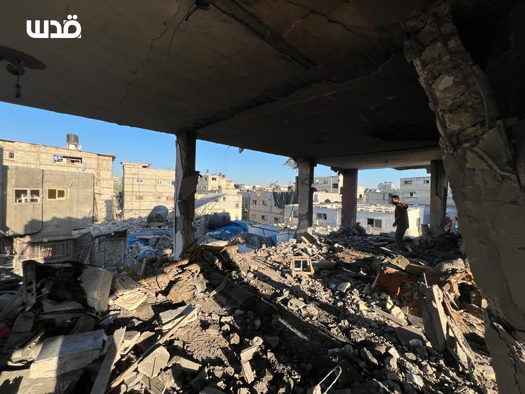 شبكة الخامسة للأنباء _غزة شهيدان شقيقان بعد تدمير الاحتلال منزلاً لعائلة الغندور في معسكر خانيونس.