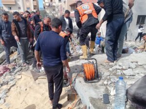 صور||طواقم الدفاع المدني تتمكن من انتشال عدد من الشهداء ونقل عدد من المصابين من منزل عائلة “الشاعر” برفح