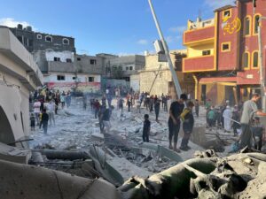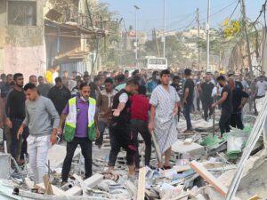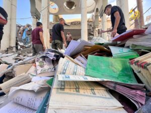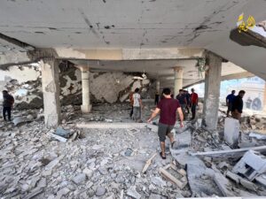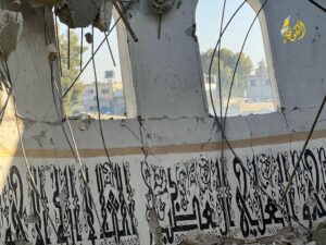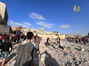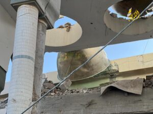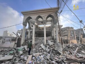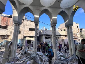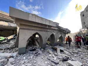 صور|| آثار دمار مسجد خالد بن الوليد بعد قصفه من قبل طائرات الاحتلال في المعسكر الغربي في مدينة خانيونس
