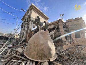 صور|| آثار دمار مسجد خالد بن الوليد بعد قصفه من قبل طائرات الاحتلال في المعسكر الغربي في مدينة خانيونس.