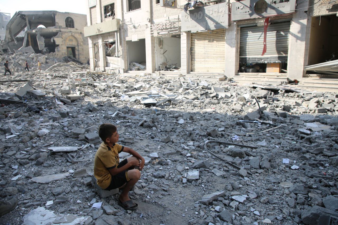 صور | آثار قصف الاحتلال عمارة “شُرّاب” السكنية في حي الرمال بمدينة غزة