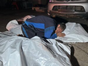 صور| أب يودع أبنائه الذين ارتقوا بقصف إسرائيلي لمنزل عائلة مطر غربي النصيرات