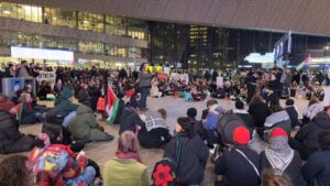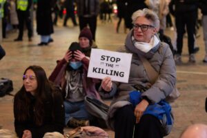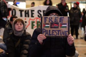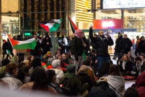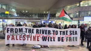 اعتصام في محطة القطار المركزية في مدينة روتردام الهولندية، تضامنًا مع فلسطين ورفضًا للعدوان الإسرائيلي على قطاع غزة.
