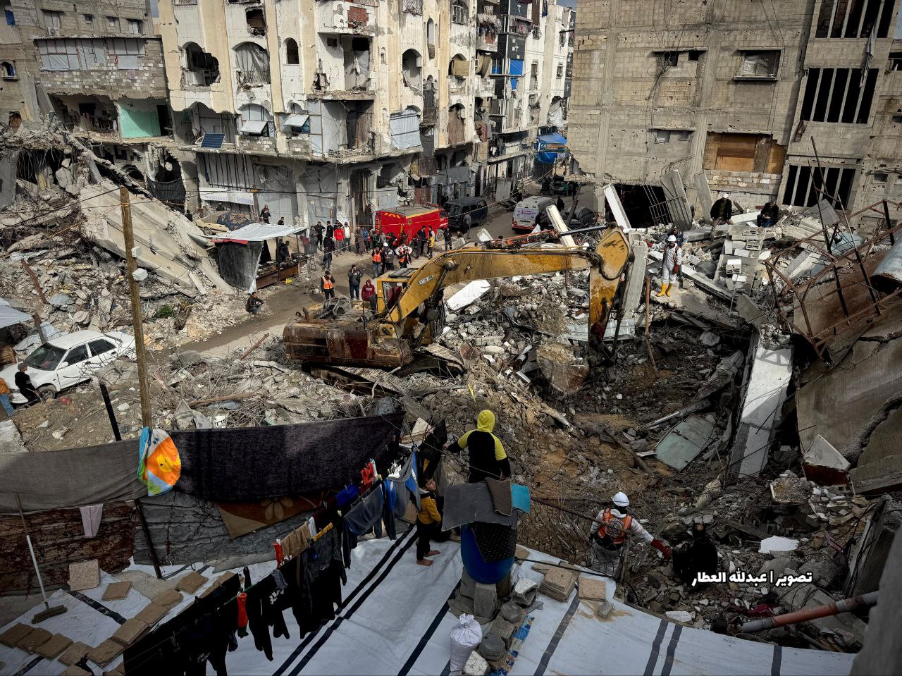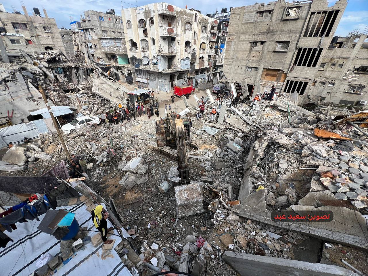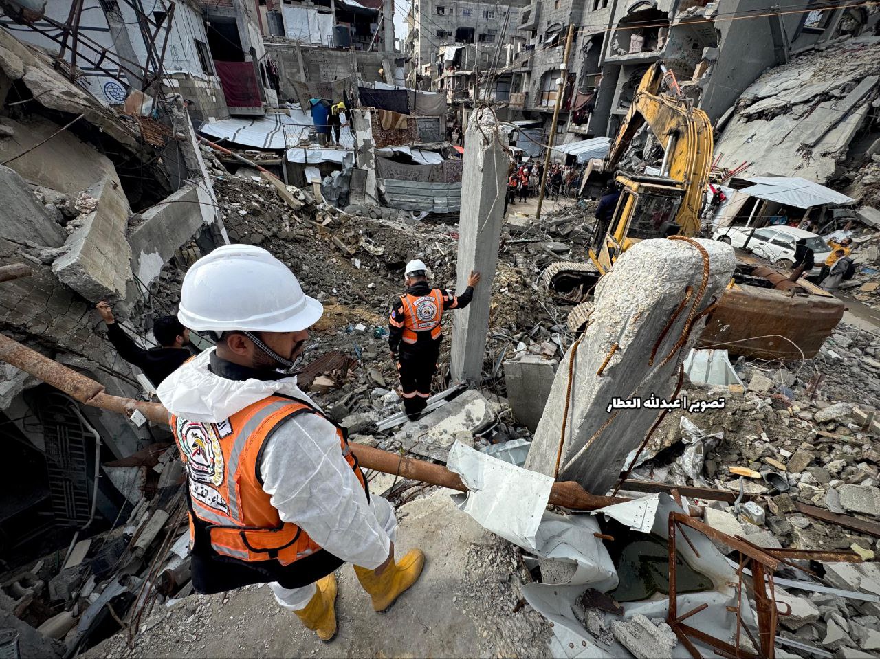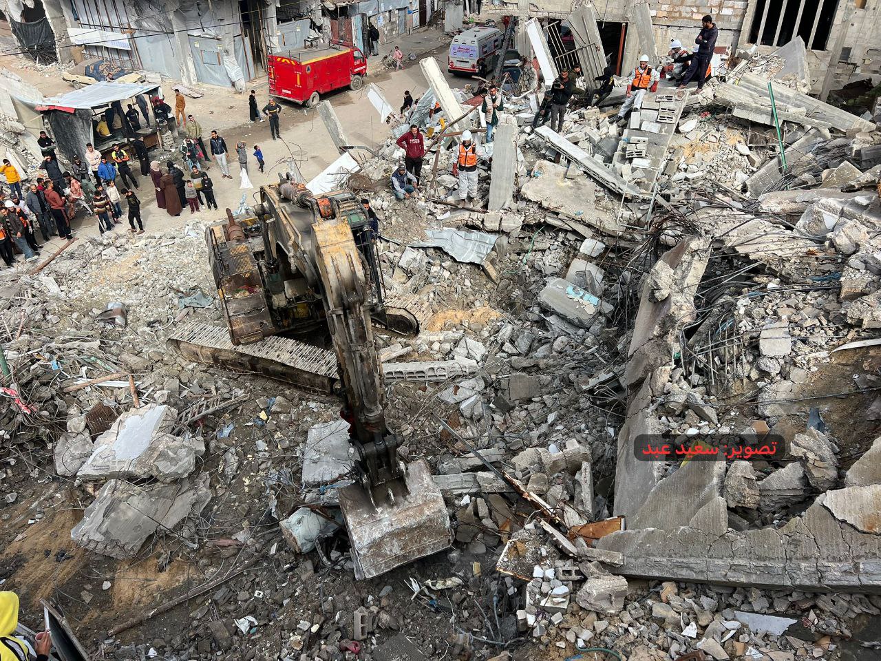 صور: الدفاع المدني يواصل عمليات البحث عن مفقودين تحت أنقاض منزل مستهدف في خانيونس