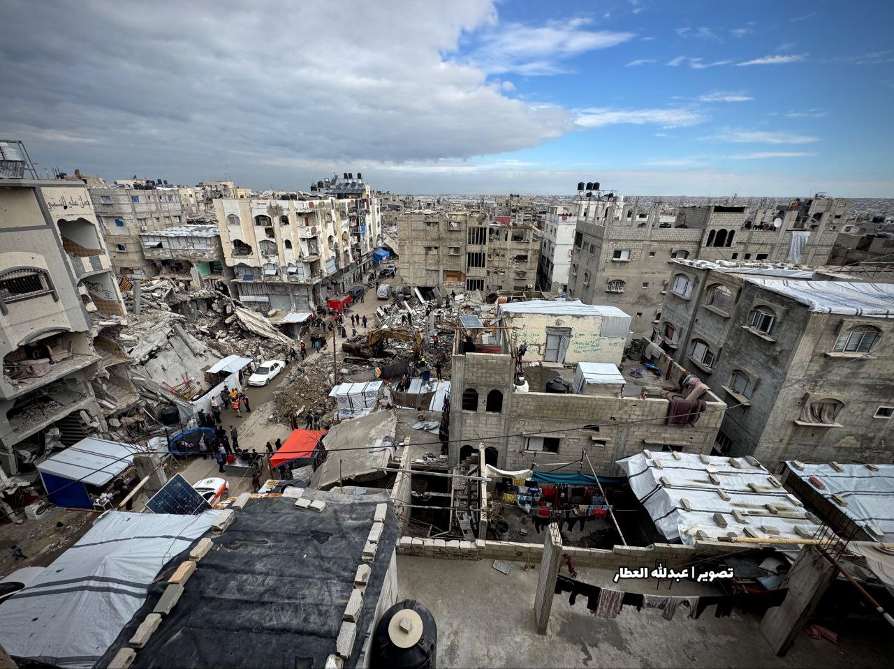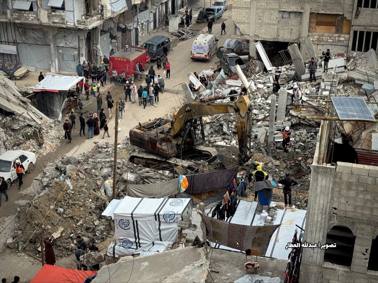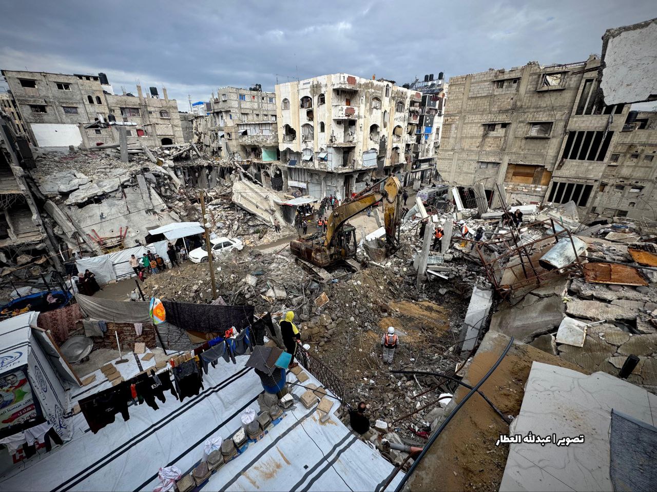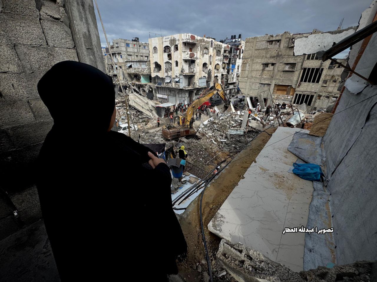 صور: الدفاع المدني يواصل عمليات البحث عن مفقودين تحت أنقاض منزل مستهدف في خانيونس