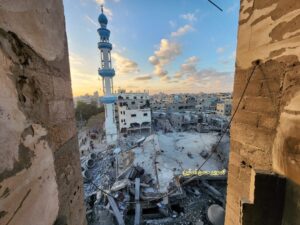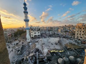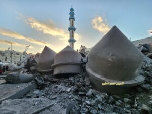 شبكة الخامسة للأنباء _غزة صور |الدمار الكبير في مسجد الفاروق بمخيم الشابورة برفح جنوب القطاع