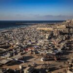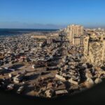 صور جديدة توضح حجم نزوح المواطنين من احياء شرق مدينة غزة لجهة الغرب ويظهر حجم الدمار الذي لحق بالمباني والبنية التحتية بمنطقة غرب مدينة غزة في محيط شارع الرشيد و ميناء غزة. والشاليهات