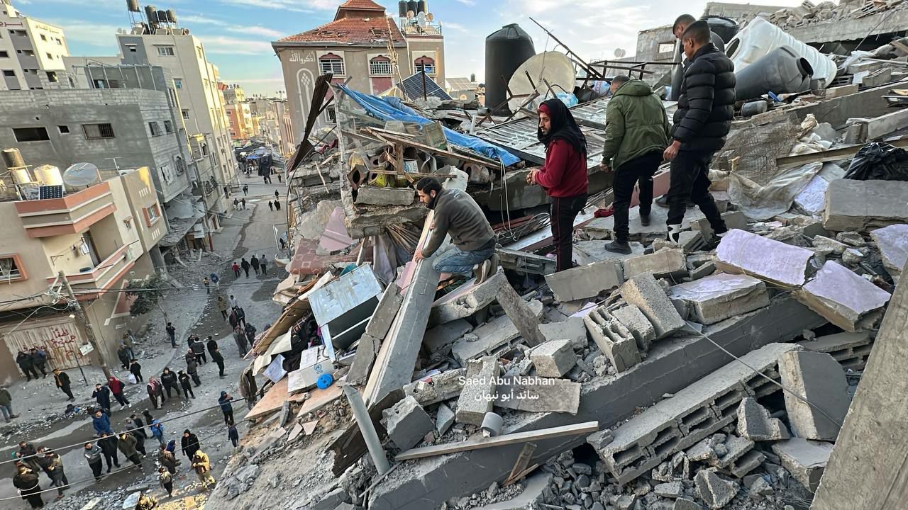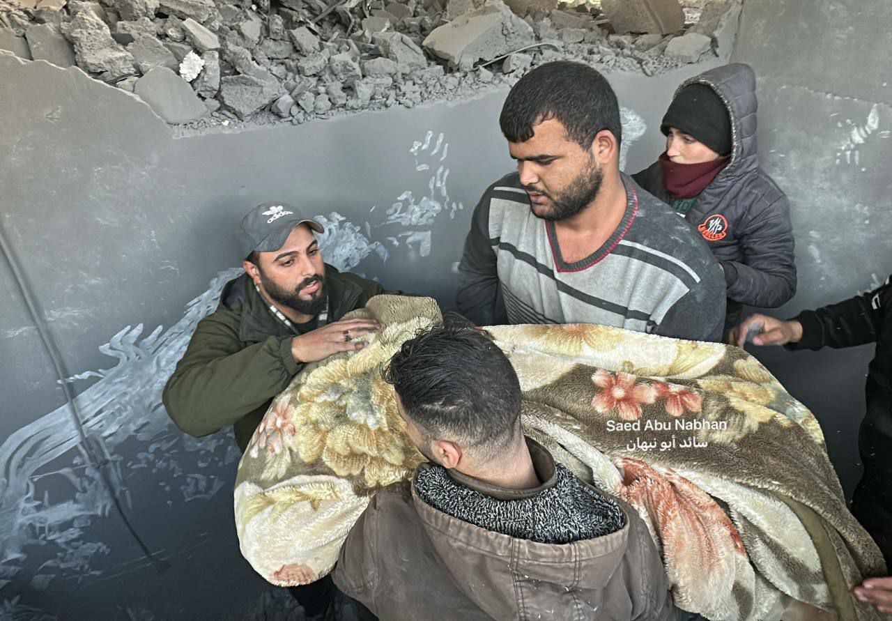 صور || انتشال شهيدتين اطفال من اسفل ركام منزل عائلة ابو خروف في مخيم ١ بالنصيرات