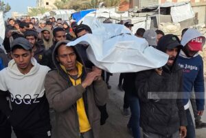 تشييع جثمان الشهيد نور أبو ستة في مجمع ناصر الطبي بعد ارتقائه برصاص الجيش الإسرائيلي جنوب خان يونس