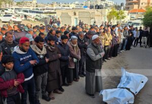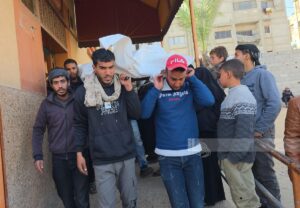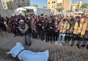تشييع جثمان الشهيد نور أبو ستة في مجمع ناصر الطبي بعد ارتقائه برصاص الجيش الإسرائيلي جنوب خان يونس