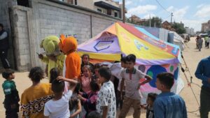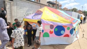 معلمون حولوا خيام النازحين في مدينة رفح إلى صفوف لتعليم الاطفال في مبادرة أطلقها عدداً من المعلمين في ظل انقطاع الطلاب عن التعليم بعد تدمير الاحتلال للمدارس في قطاع غزة