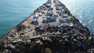 صور تُظهر تكدس خيام النازحين في منطقة ميناء القرارة شمال غرب خان يونس
