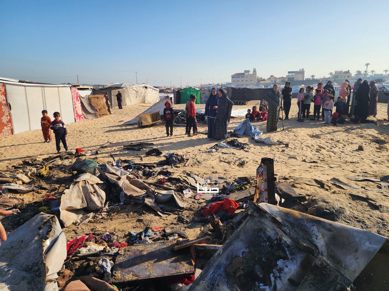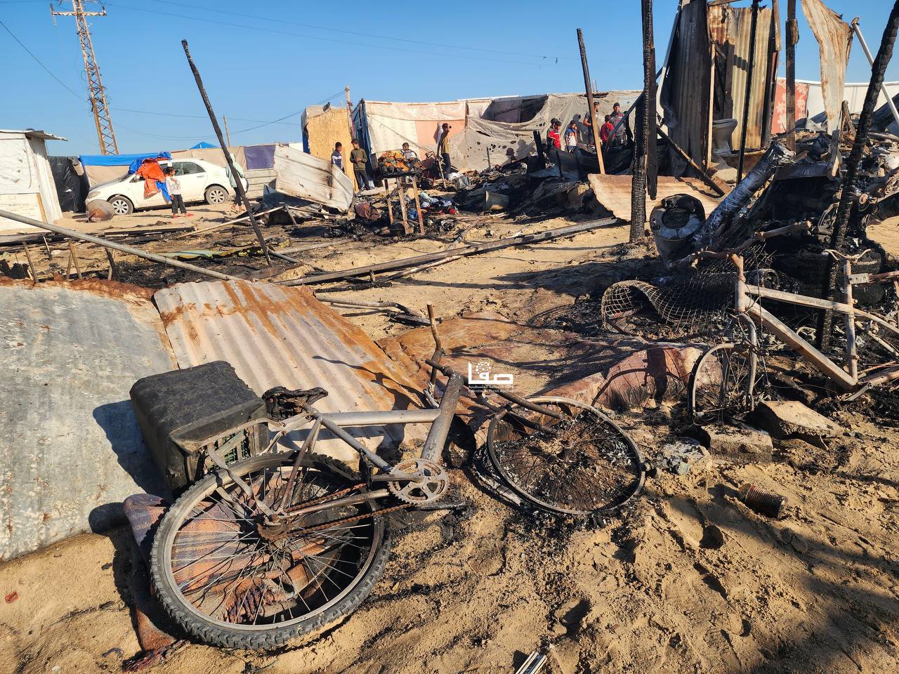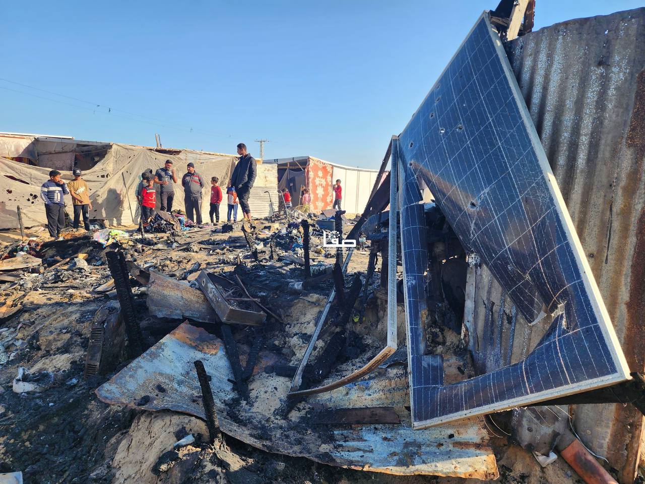 صور ||  جانب من حرق وتدمير خيام النازحين إثر القصف الإسرائيلي على مواصي خانيونس جنوبي قطاع غزة مما أدى إلى استشهاد وإصابة عدد من المواطنين.