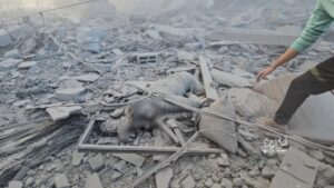 صور شهداء وعشرات المصابين في قصف طائرات الاحتلال منزلا يعود لعائلة ابو عيطة في مخيم جباليا شمال قطاع غزة.