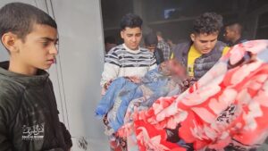 صور شهداء وعشرات المصابين في قصف طائرات الاحتلال منزلا يعود لعائلة ابو عيطة في مخيم جباليا شمال قطاع غزة.
