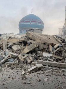صور | طيران الاحتلال يدمر عصر اليوم مسجد الشهداء “السوق” وسط خان يونس جنوب قطاع غزة.