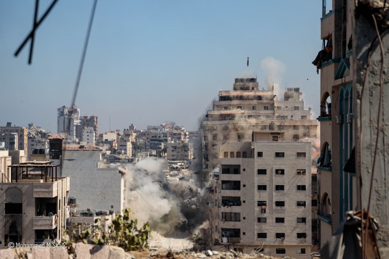 صور | لحظة تدمير الاحتلال برج الكوثر في حي تل الهوى جنوب غرب مدينة غزة.