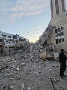شبكة الخامسة للأنباء _غزة صور|| مسجد يافا في دير البلح تحول إلى ركام بعد قصفه من قبل الاحتلال.