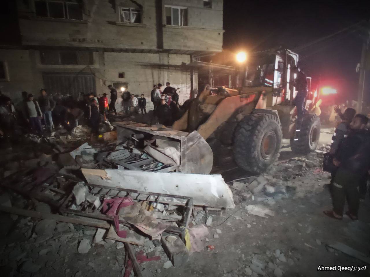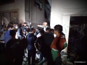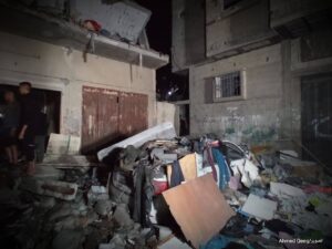 شبكة الخامسة للأنباء _غزة صور من استهداف منزل يعود لعائلة الهمص بمخيم يبنا وسط مدينة رفح.