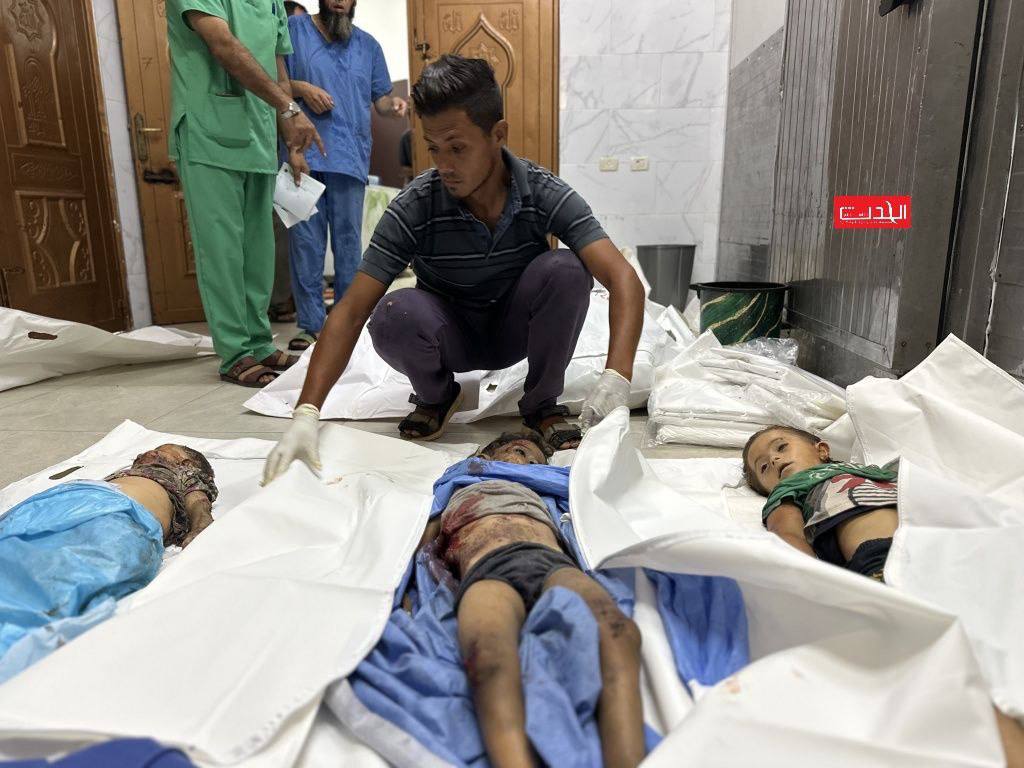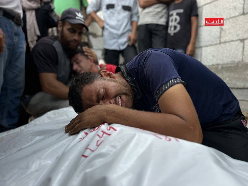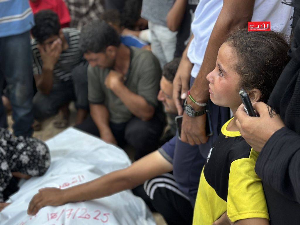 صور من وداع شهداء مجزرة قصف منزل عائلة ابو سحلول من بينهم شهيدة من عائلة ابو شهلا غرب مدينة خانيونس وقصف خيام النازحين غرب المدينة