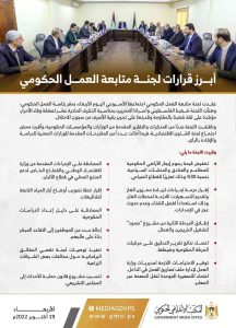 ووافقت على إطلاق المرحلة الثانية من مشروع “صمود” لتشغيل الخريجين والعمال، كما اعتمدت نتائج تقرير التدقيق على مركبات الحركة الحكومية وضبطها.