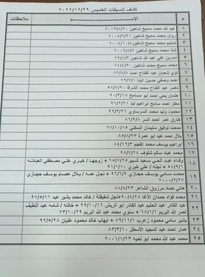 أعلنت الهيئة العامة للمعابر والحدود بوزارة الداخلية والأمن الوطني، عن وصول كشف “تنسيقات مصرية” للسفر عبر معبر رفح البري يوم الخميس (29 ديسمبر)، والذين عليهم التواجد س 7:00 صباحاً في الصالة الخارجية للمعبر لتسهيل سفرهم.