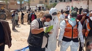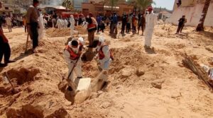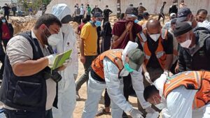 صرح الدفاع المدني أن طواقمه انتشلت في محافظة خانيونس اليوم 50 جثة شهيد من مختلف الفئات والأعمار، كانت قد جمعتهم قوات الاحتلال و دفنتهم بشكل جماعي داخل مجمع ناصر الطبي.