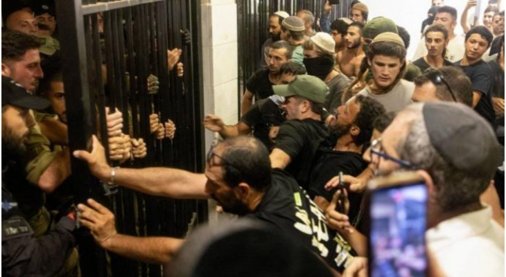 واقتحم أنصار اليمين مقر المحكمة العسكرية في قاعدة بيت ليد، مساء الإثنين، في ما بدا أن أجهزة الأمن الإسرائيلية فقدت السيطرة على الموقف، وذلك إثر اقتحام العشرات برفقة أعضاء كنيست عن أحزاب الائتلاف، قاعدة سديه تيمان، إثر توقيف 9 جنود في قوات الاحتياط لضلوعهم باعتداء جنسي جماعي على أسير من غزة ما أسفر عن إصابته بحالة خطيرة.