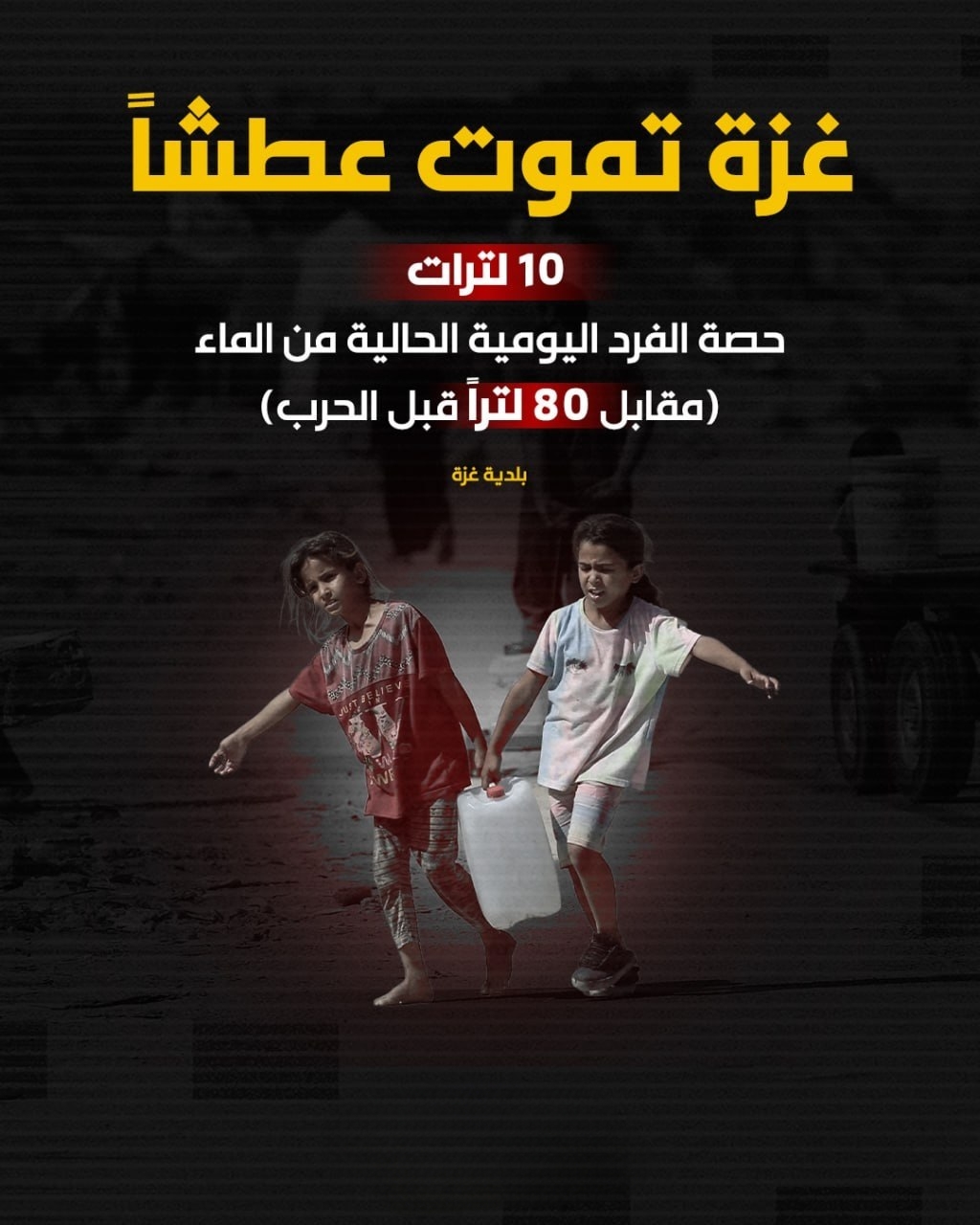 غزة تحت “الحصار المائي”: تراجع حصة الفرد من المياه بنسبة 88% بعد تدمير البنية التحتية