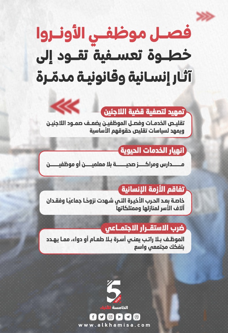 فصل موظفي الأونروا خطوة تعسفية تقود إلى آثار إنسانية وقانونية مدمرة