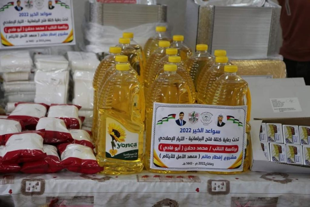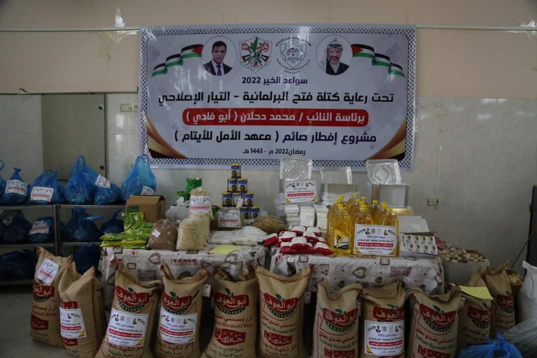 استأنفت كتلة فتح البرلمانية، برئاسة النائب محمد دحلان، صباح اليوم الأربعاء، حملتها التي أطلقت عليها سواعد الخير2022، في معهد الأمل للأيتام، حيث قدمت الكتلة مواد غذائية كان قد طلبها المعهد لإعداد وجبات إفطار تكفي 2000 يتيم لمدة عشرة أيام.