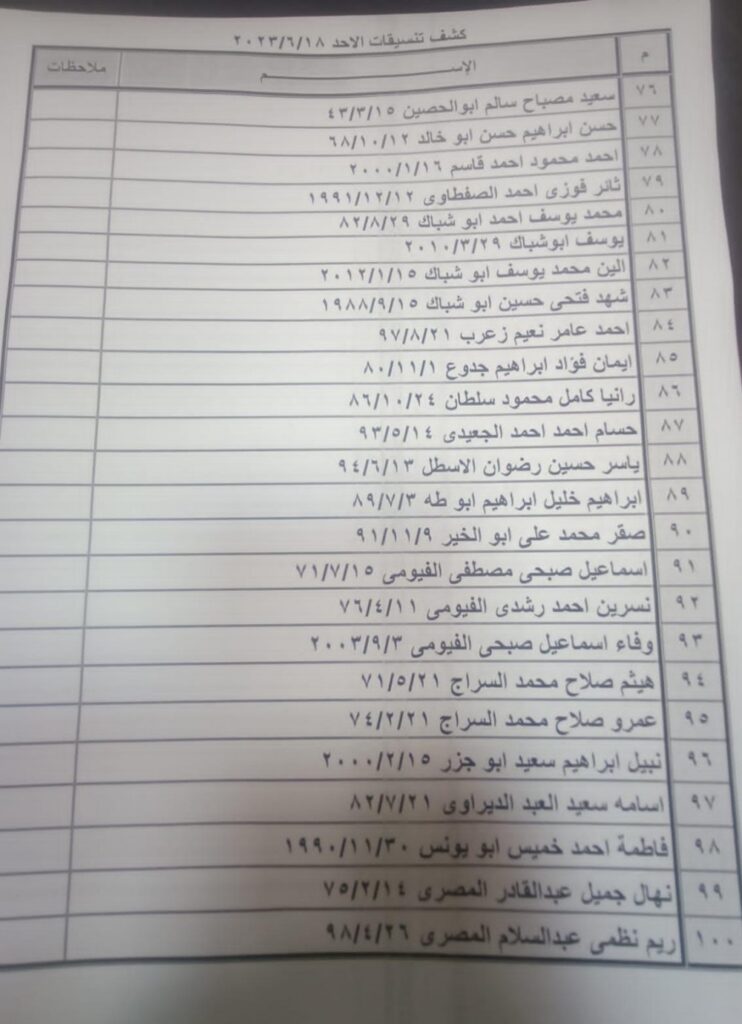 كشف أسماء “تنسيقات مصرية” للسفر عبر معبر رفح يوم غدٍ الأحد 18 يونيو