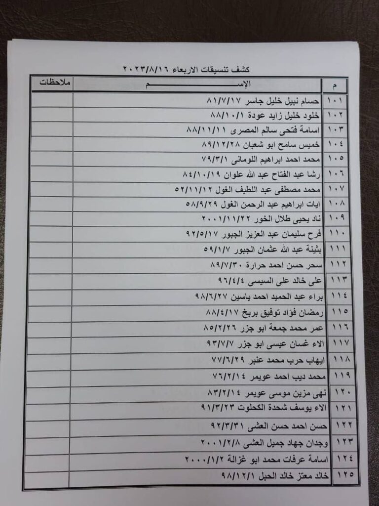 كشف أسماء “تنسيقات مصرية” للسفر عبر معبر رفح يوم الأربعاء 16 أغسطس