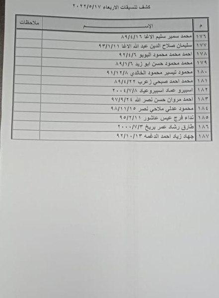 ودعت المواطنين الواردة أسماؤهم في كشف التنسيقات عليهم التواجد الساعة 7:00 صباحاً في الصالة الخارجية للمعبر لتسهيل سفرهم.