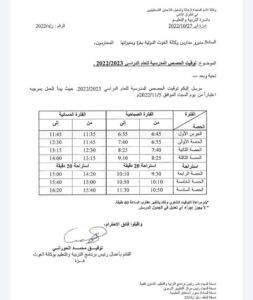 وأوضحت مديرية التعليم التابعة لوكالة غوث وتشغيل اللاجئين، أنه سيتم العمل لديها وفقاص للجدول أدناه إلى حين الانتقال إلى التوقيت الصيفي بدءاً من الأسبوع المقبل..