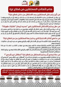 وفيما يلي المزيد من الإرشادات الخاصة لعائلات معتقلي غزة، حسب ما أوردته مؤسسات الأسرى: