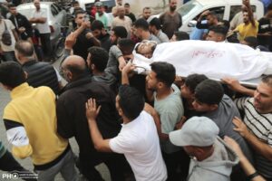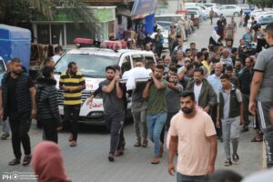 صور: تشيع جثامين عدد من الشهداء أثر قصف طائرات عدة أماكن في محافظة خان يونس جنوبي قطاع غزة.