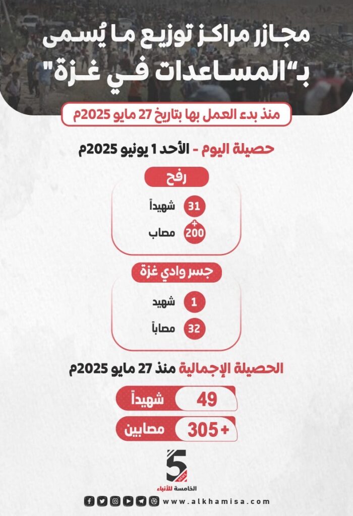 الرئيسية/انفو جرافيك الخامسة/مجازر مراكز توزيع ما يسمى بالمساعدات في غزة انفو جرافيك الخامسة مجازر مراكز توزيع ما يسمى بالمساعدات في غزة1 يونيو، 2025 شبكة الخامسة للأنباء - غزة الوسومالاحتلال الاسرائيلي المساعدات الأمريكية غزة مجازر مراكز توزيع المساعدات نسخ الرابط تم نسخ الرابط 1 يونيو، 2025 شاركها فيسبوك X ماسنجر ماسنجر واتساب تيلقرام طباعة