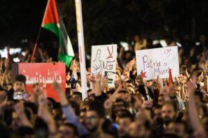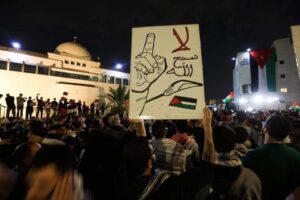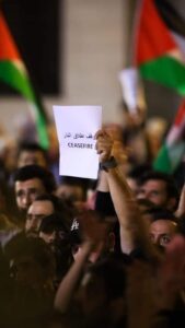 مظاهرة حاشدة بمحيط السفارة “الإسرائيلية” في العاصمة الأردنية عمان تنديدًا بمجزرة جباليا