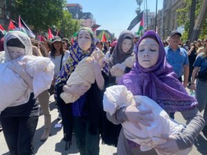 مظاهرة حاشدة في سانت دايجو- تشيلي تنديداً بجرائم الاحتلال الإسرائيلي وقتل الأطفال بغزة