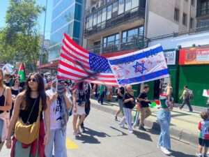 مظاهرة حاشدة في سانت دايجو- تشيلي تنديداً بجرائم الاحتلال الإسرائيلي وقتل الأطفال بغزة