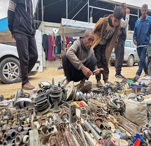 إقبال كبير على الشراء من سوق الخردة، المستخرجة من بين أنقاض المنازل المدمرة في خان يونس جنوب قطاع غزة