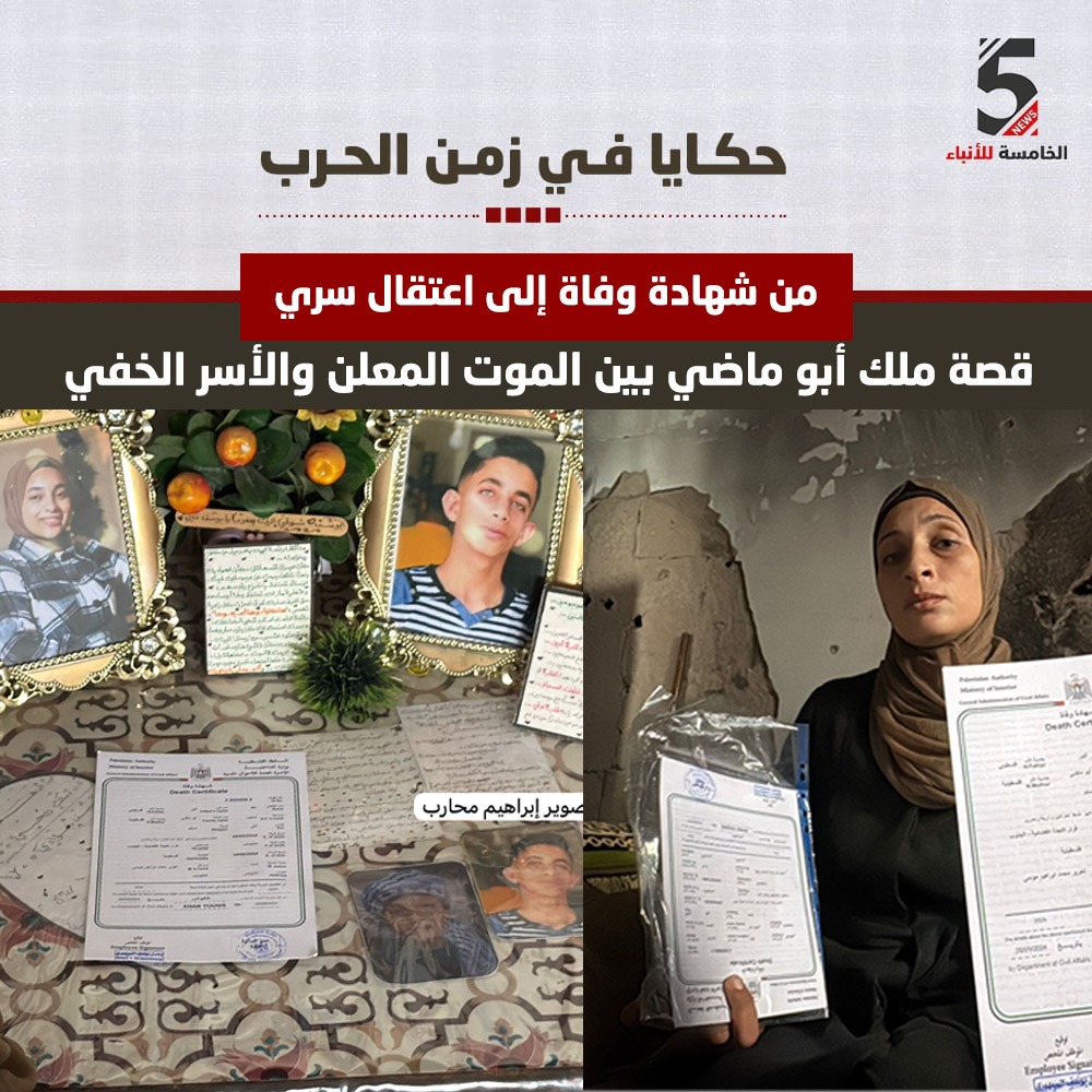 بين شهادة وفاة لا تعني الموت، واسمٍ ظهر في بيان ليكشف الأسر، تبقى قصة ملك أبو ماضي شهادة حيّة على معاناة العائلات الفلسطينية مع الغياب القسري وسرقة الحقيقة في ظل العدوان المتواصل على قطاع غزة.