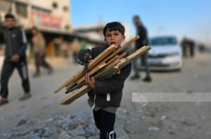 نازحون في خان يونس يستخدمون الحطب للطهي بسبب شحّ غاز الطهي، ما يعرّض خيامهم لخطر الاحتراق ويهدد صحة الأطفال وكبار السن جرّاء الدخان