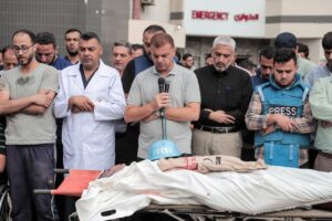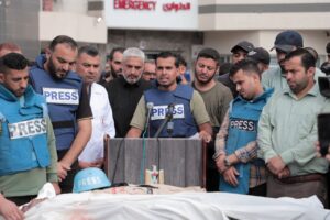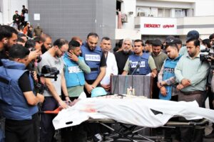 وداع وتشييع الشهيد الصحفي محمد بعلوشة الذي ارتقى بعد قصف طيران الاحتلال منزله في شمال غزة