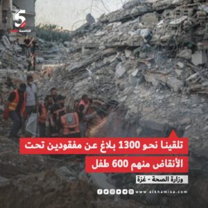 وزارة الصحة: تلقينا نحو ١٣٠٠ بلاغ عن مفقودين تحت الانقاض