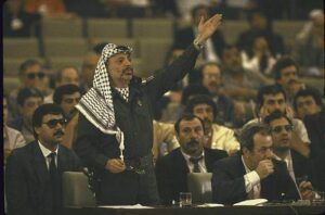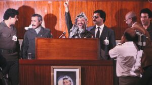 أعلن عرفات يوم 15 نوفمبر/تشرين الثاني 1988 في قصر الصنوبر بالعاصمة الجزائرية قيام الدولة الفلسطينية المستقلة وعاصمتها القدس الشريف، وذلك في خطاب أمام المجلس الوطني الفلسطيني جاء فيه أن المجلس “يعلن باسم الله وباسم الشعب العربي الفلسطيني قيام دولة فلسطين فوق أرضنا الفلسطينية وعاصمتها القدس الشريف”.