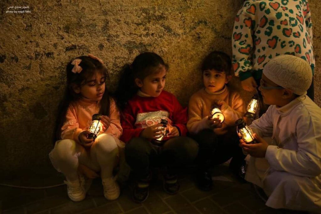 📷صور|| أطفال يحتفلون بالفوانيس والأضواء في شوارع مدينة غزة في أول أيام شهر رمضان المبارك