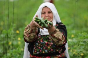 📷نساء فلسطينيات يقطفن ثمار الخيار من البيوت البلاستيكية الزراعية في دورا جنوب الخليل.